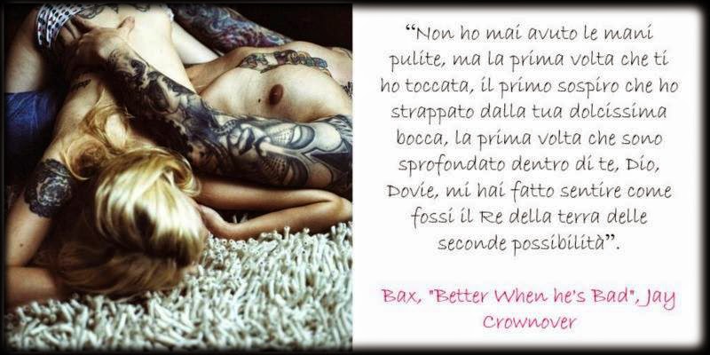 “Better when he’s Bad” è un romanzo Dark New Adult, descritto come crudo, spietato, violento ed allo stesso tempo eccitante, erotico e coinvolgente. Poiché i tempi di pubblicazione in Italia sono ancora sconosciuti ma questo Brax mi ha già conquistata ho già deciso che sarà la mia prossima lettura in inglese... Vi faro sapere!!